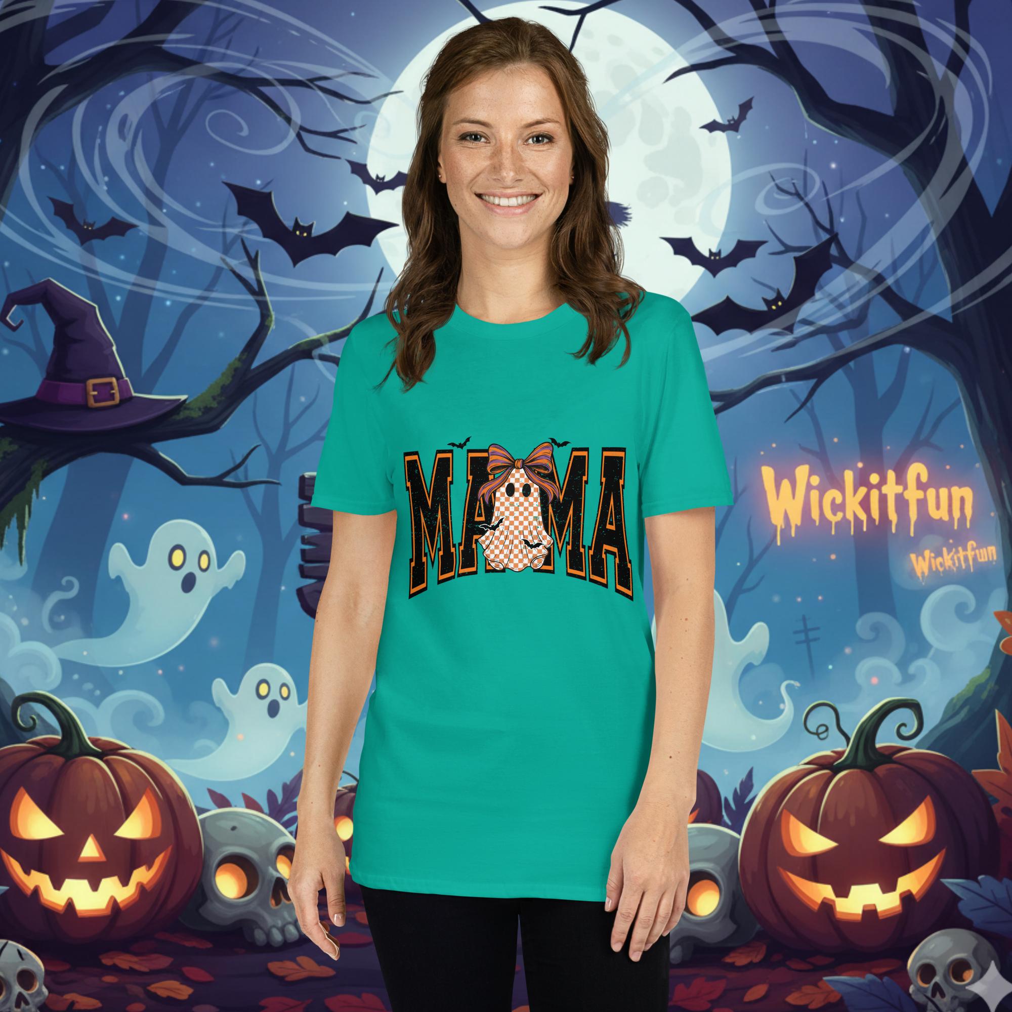 MAMA Ghost T-Shirt – Cute Pink Bow Halloween Mama Shirt for Moms -