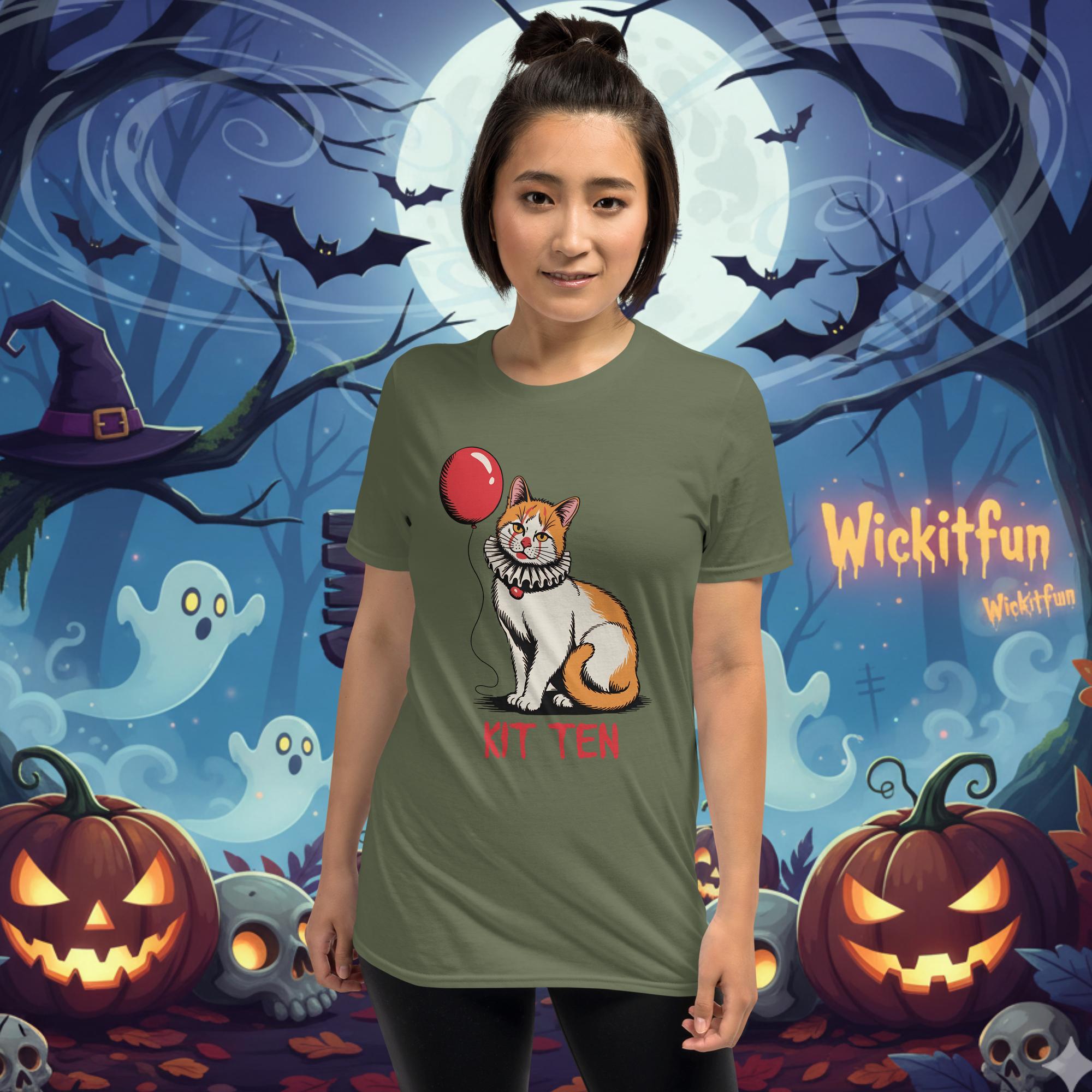 Kit Ten Horror Cat Shirt, Funny Pennywise Cat Halloween Tee, Scary Clown Cat TShirt for Horror Fans, Creepy Cute Halloween Shirt -