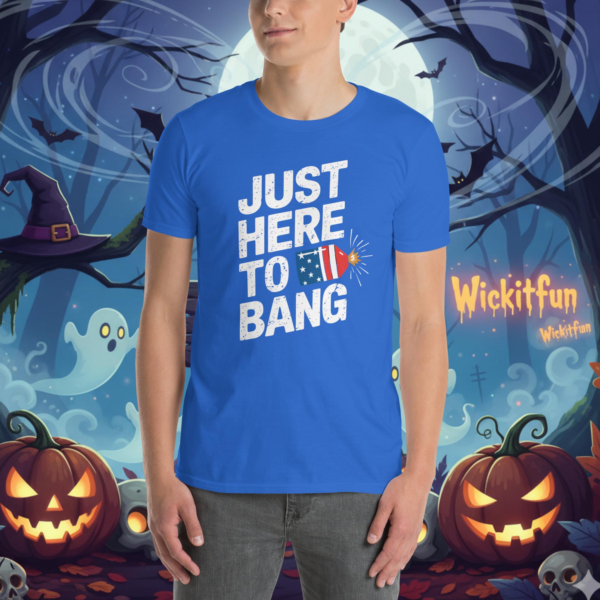 Just Here to Bang Shirt, Funny 4th of July Firework Tee, Patriotic Humor TShirt for Men and Women, WickitFun USA Party Gift -